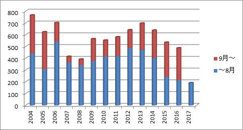 確かに夏ですので如何ともしがたい暑い日はありました。でもそういう日は例年に比べ数少ない感じがします。事実太平洋岸では記録的になるくらいの長雨の8月で、凶作で外来米を輸入せざるを得なかった年と同じくらいの冷夏であると報じていた記事もあります。先月の初めにかけて県南では豪雨被害に見舞われましたが、台風シーズンはこれからが本格的になります。不測の事態に対して備えは十分にしておきましょう。